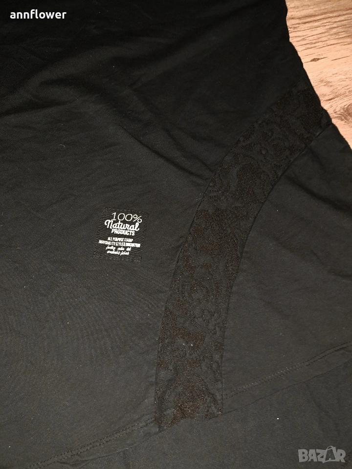 Блузата е нова, но няма етикет защото е изпрана. Цвят черен, материя 95% памук и 5% еластан.