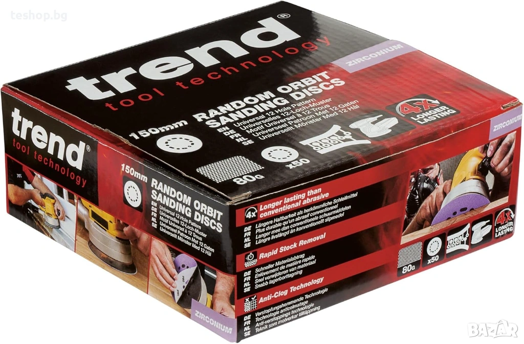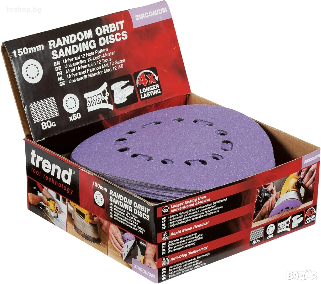 Шлайфателен диск с абразив Trend Zirconium 150 мм, случаен ход, 80 зърна, AB/150/80Z/B, пакет от 50