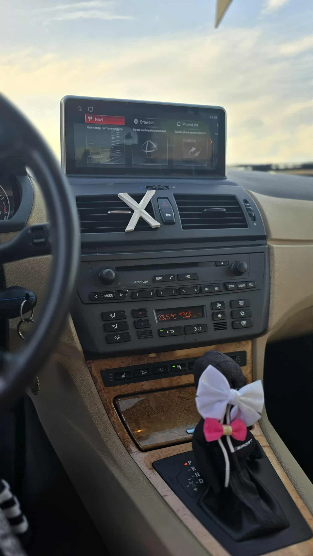 Bmw x3 e83 3. 0i 228 к. с. 2004 година. + . Смяна на маслото на скоростната кутия. След този (ремонт) скоростната кутия трудно влиза в директна лятото когато е топло, зимата няма проблем. + Датчик на коляновия вал. + Смяна на свещи, запалителна бобина ( пазя старите, защото може да има някои работещи ), картерна вентилация, смяна на тръби за вакуум и почистване на дроселова клапа. + Газовата бутилка е сменена с нова и е паспортно изрядна за 10г. напред. + колата е с минат преглед до следващата година октомври месец. + Колата беше без степенки, затова съм купил отделно ( пазя старите прагове. ) + Това лято колата е зареждана с фреон. + Извършено е прочистване на радиаторчето в купето ( С това се опитах да оправя парното, имаше ефект за около 1-2 седмици, защото е било трудно " пробиването" , докато започне прочистването и са излезли доста батаци. . най-вероятно пак е запушено. ) + Мултимедия андроид с Google play store . - Парното работи само на високи обороти ( това отговаря само за топлината, парното като цяло си духа, но не топли евентуално идва когато колата е на високи обороти, а при охлаждане няма проблеми. ) - Парттроника има проблем с някой от датчиците и постоянно отчита, че им обект наблизо. Бартери не ме интересуват! ! !