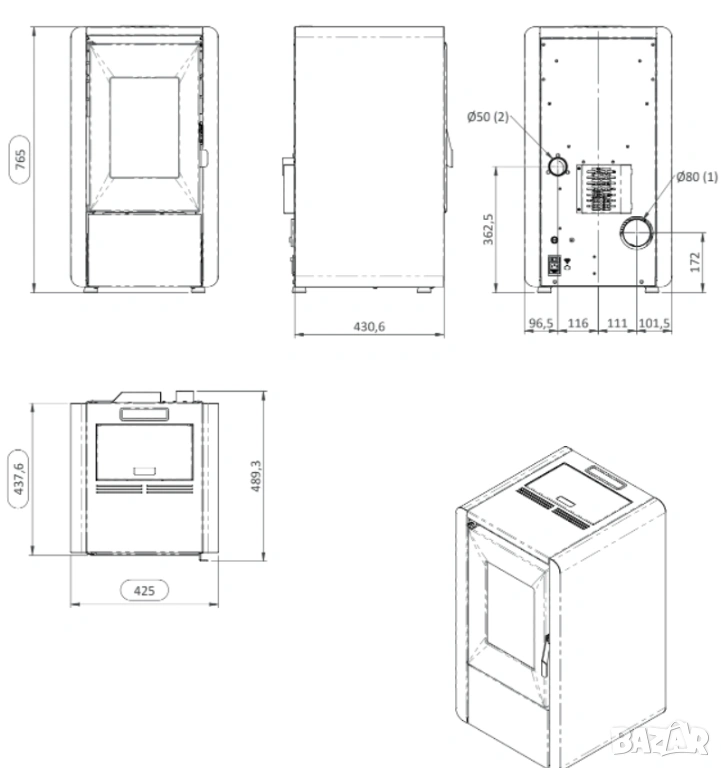 Италианска суха пелетна камина Petite 6 kW е подходяща за отопление на апартамент, къща, офис и други помещения до 145 m3. Камината на пелети е високоефективна и е произведена от висок клас италиански компоненти. При топловъздушните камини не е необходимо изграждане на инсталация, а само свързване към комин за отвеждане на димните газове. Лесно се работи с пелетната камината посредством 3 бутонен контролен панел с дисплей. Сухата камина разполага с вентилатор за стая, който е с 5 нива на мощност и чугунена горелка за по- продължително горене. Запалването е автоматично и благодарение на вградения стаен термостат, пелетната камина постоянно контролира желаната температура в помещението и автоматично дозира подаването на пелети от бункера, който е поместен в конструкцията на камината. Италианската суха пелетна камина Kalor Petite 6 е с автоматично въздушно почистване на горивната камера от пепелния остатък . Стандартна окомплектовка с вентилатор за димни газове. Опция при сухите пелетни камини Artel е възможност за командвате през смартфон с модула DpRemote, който ще позволи да контролирате топлината в дома си от разстояние.