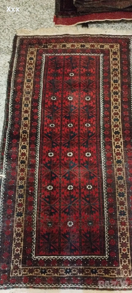 Внос от Германия.Много стара пътека за ценители.Има лека забележка която съм снимал.Без скъсано.Топ качество.Смнимките са на закрито няма разлика във цветовете