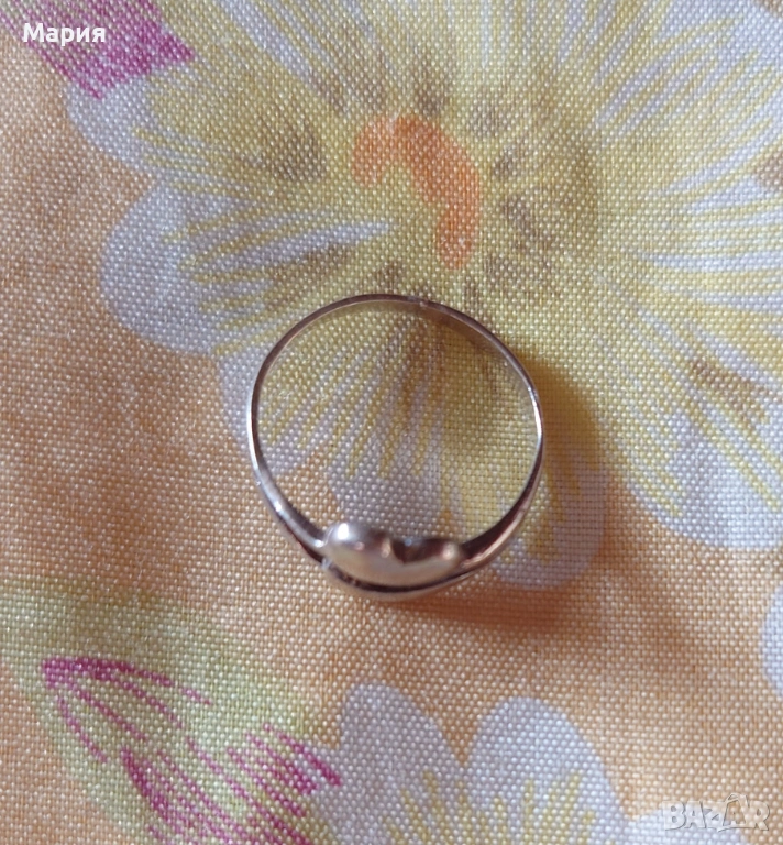 Пръстен със стилизирано сърце и вълнообразна лента под него. Вътрешен диаметър - около 17.5 мм.