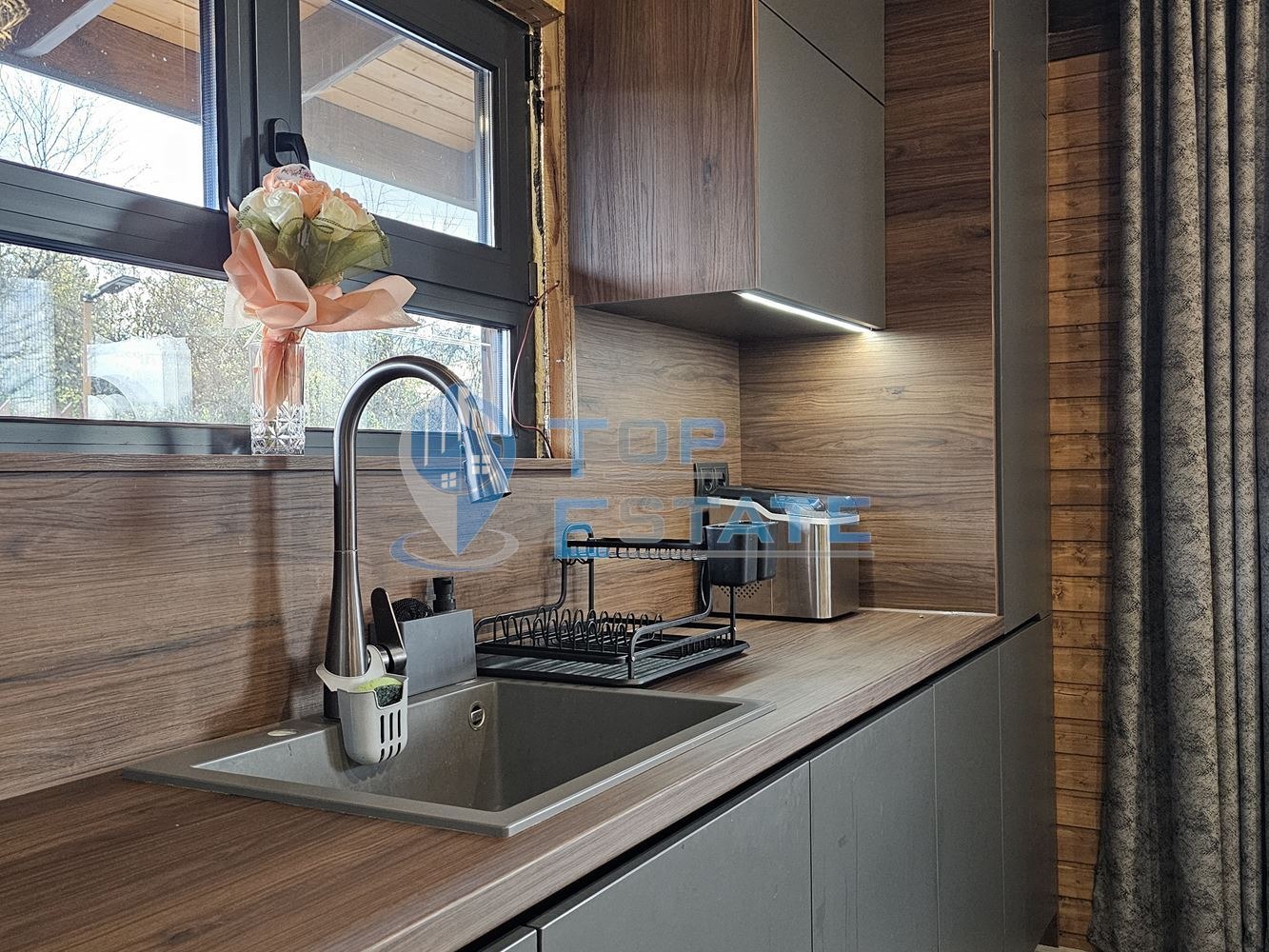 Видео на имота! Топ Естейт Недвижими имоти Ви предлага новопостроена къща с четири спални и прекрасна панорама в Еленския Балкан. Къщата е построена и въведена в експлоатация през 2025 г., като е проектирана и изградена с внимание към всеки детайл, съчетавайки модерна визия, високотехнологични решения, енергийна ефективност и уют чрез използването на висок клас материали. Къщата е построена от висококачествени дървени материали KVH и BSH, а екстериорната облицовка е изпълнена с естонска ламперия клас А избор, който гарантира безупречна визия и надеждна защита. Всички дървени елементи са обработени с премиум масла OSMO за максимална устойчивост на климатични влияния. Топлоизолацията е решена с два слоя по 10 см каменна вата, комбинирани с алуминиева дограма с термомост Четири сезона и VELUX покривни прозорци. Отоплението и охлаждането се осигуряват от екологична термопомпа въздух/вода, а покривът е изпълнен с надеждната Lindab Click System. Вътрешното оформление впечатлява с внимателно подбраните материали и дизайн - всекидневната е подчертана с уникални мебели от масивен орех арт трапезна и холна маса, както и елегантно стълбище, което се превръща в естествен фокус на пространството. Спалните са създадени за пълен релакс: висококачествен мокет, легла от масивно дърво, матраци NANI и смарт телевизори всичко е подбрано така, че да предлага максимален комфорт и уют. Кухнята е оборудвана с висок клас техника и модерни решения за удобство в ежедневието. Разгънатата застроена площ на къщата е 134 кв.м, разпределени между два етажа, като на първият етаж се намира просторно общо пространство, в което кухнята и всекидневната се обединяват в една плавна линия, две спални и санитарен възел, а на вторият етаж са разположени две спални и санитарен възел. Жителите на дома могат да се наслаждават на просторна 33-квадратна веранда, оборудвана с електрическа тента и комфортна градинска мебел идеално място за почивка с прекрасна панорамна гледка към красотата на Еленския Балкан. На разположение е външно складово помещение, а целият имот е защитен с масивна дъбова ограда с метална конструкция и електрически портал. Къщата предлага възможност за независимост благодарение на собствена пречиствателна станция и хидрофорна система с воден резервоар от 3 000 литра гаранция за спокойствие и сигурност. Този имот е рядка комбинация от модерен дизайн, природосъобразни решения и перфектно изпълнение. Номер на оферта 3382. We speak English and Deutsch.