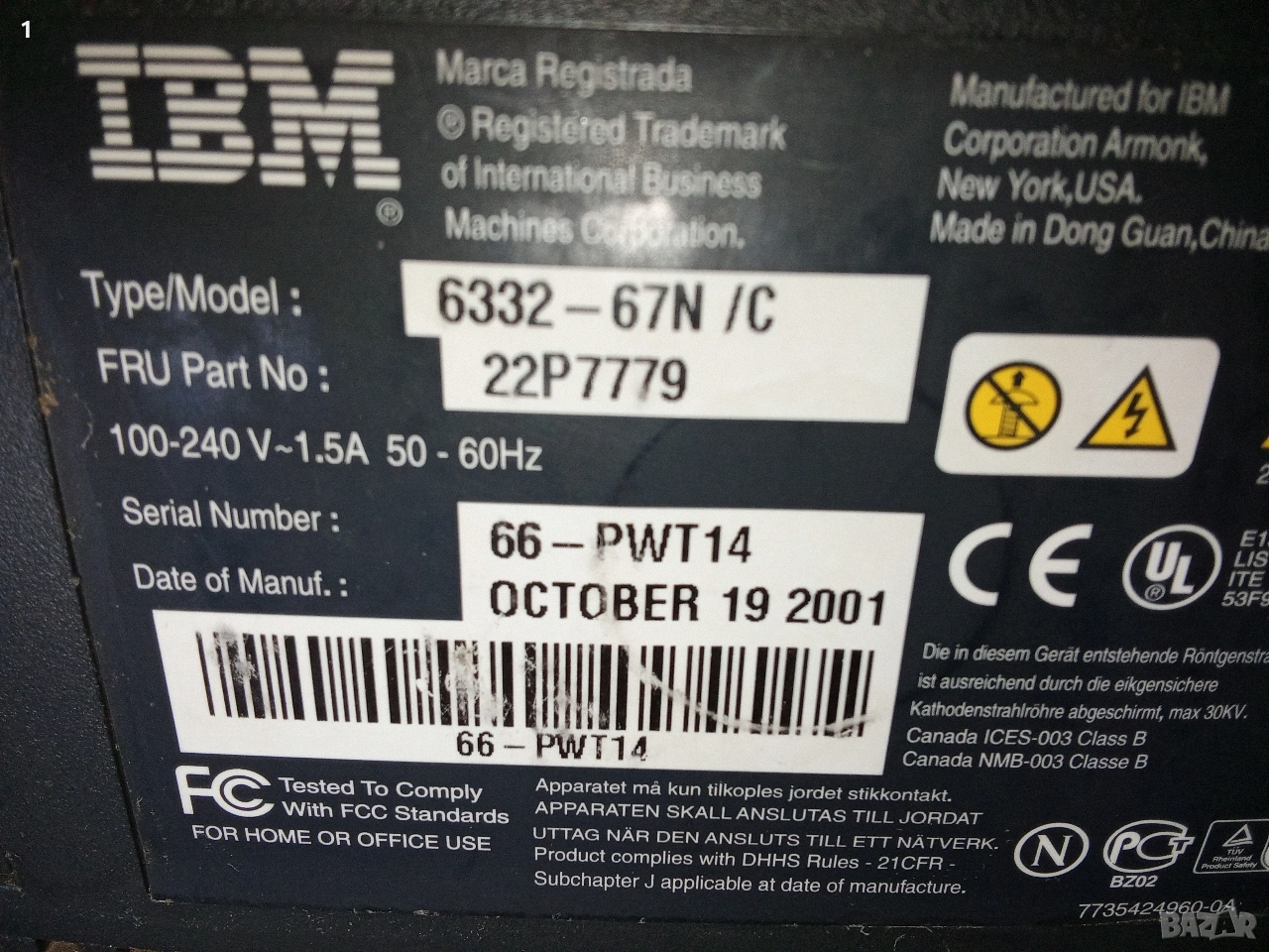 Стар монитор IBM 17 инча, работещ, в много добро състояние.