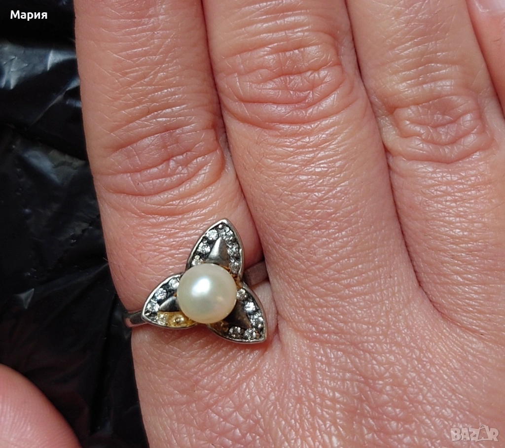Сребърен пръстен с перла → Обява 53056943