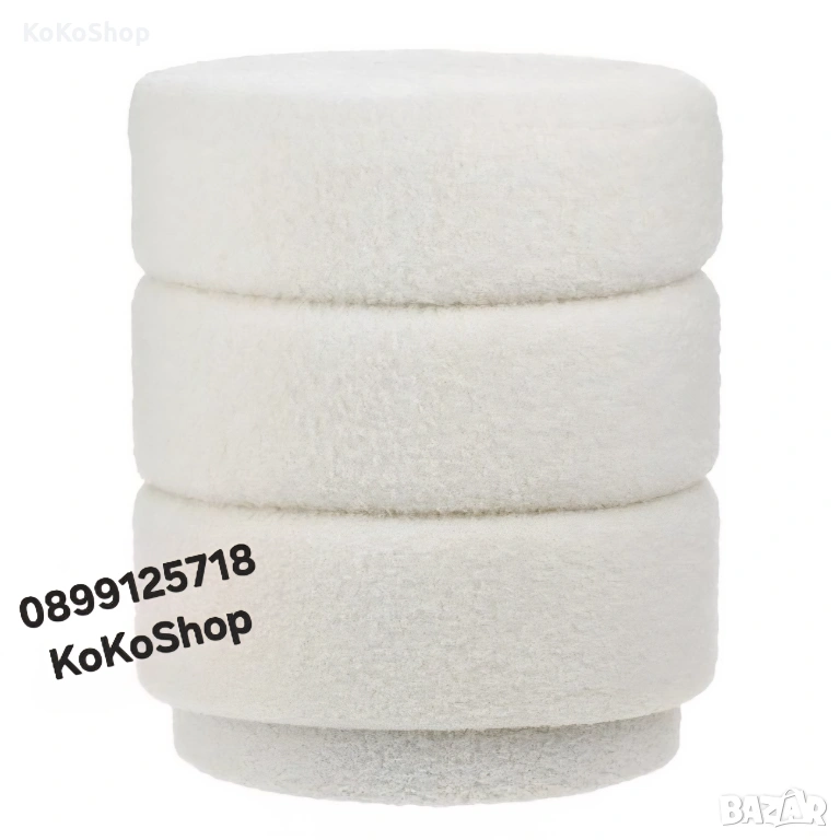 Бяла табуретка-32х42 см./мека табуретка/бял пуф → Обява 53056949