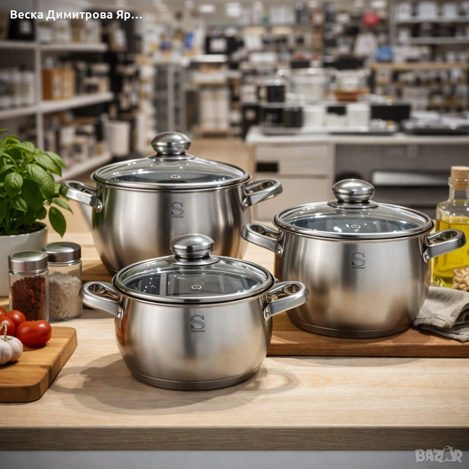 Материал: Неръждаема стомана 5-слойно капсуловано дъно за равномерно разпределение на топлината Подходящ за всякакви източници на топлина, включително индукционни котлони Размери и капацитети на тенджерите: Малка тенджера (16x9.5 см): 1.9 литра Средна тенджера (18x10.5 см): 2.7 литра Голяма тенджера (20x11.5 см): 3.6 литра Лесен за почистване и устойчив на корозия