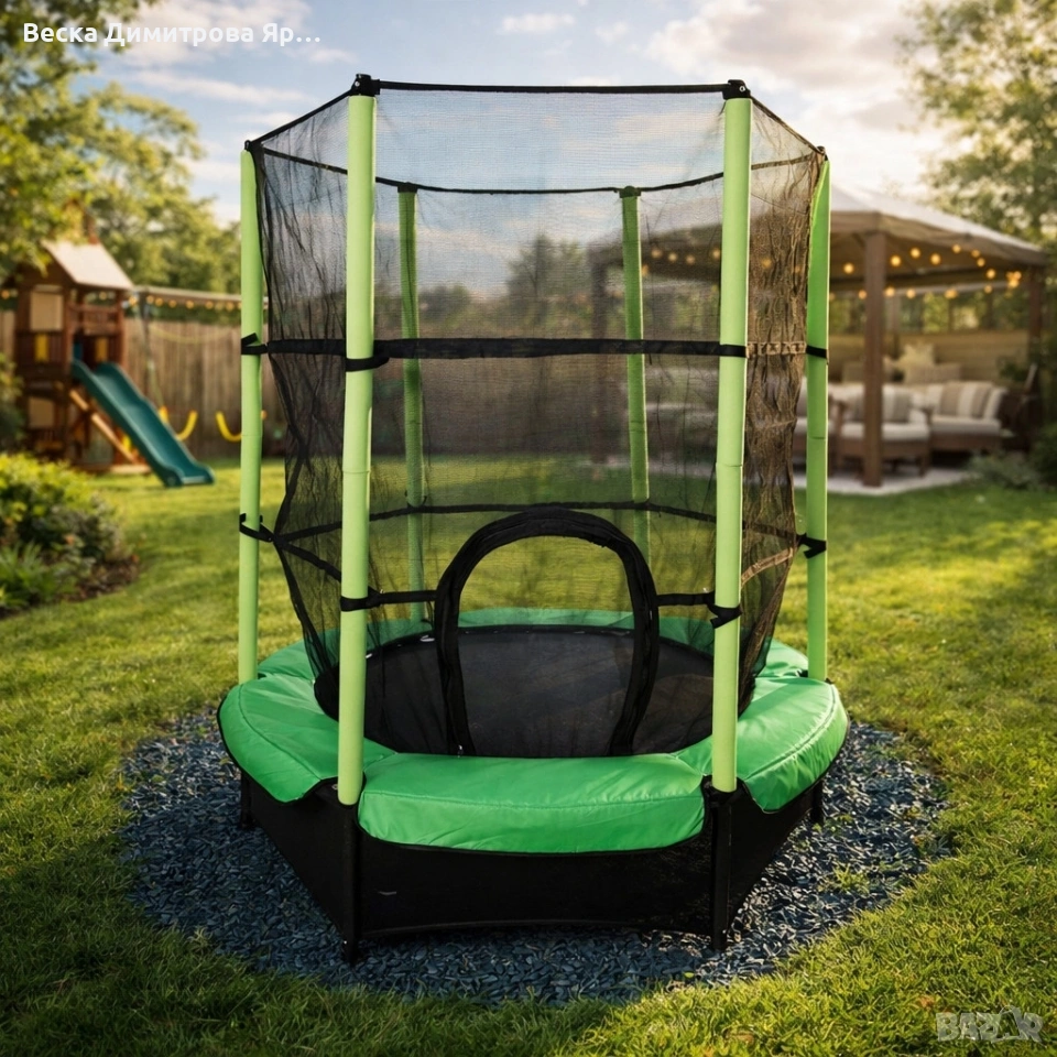 Мини батут с мрежа за безопасност – Компактен и забавен избор за деца → Обява 53057290