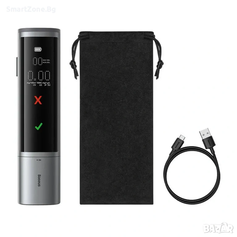 Не сте сигурни дали можете да седнете зад волана? Не се колебайте и го проверете с електронния алкотестер Baseus. Отнема само 3 секунди, за да се уверите, че можете да шофирате безопасно. Устройството е снабдено с изключително чувствителен сензор, който улавя молекулите на алкохола с висока ефективност, а вграденият смарт чип ви позволява да получите резултат с точност до 0,03 mg. Устройството предлага няколко режима на работа – можете да извършите теста самостоятелно или да включите Multi режим, за да проверите няколко драйвера, без да се налага да изтривате резултата си.