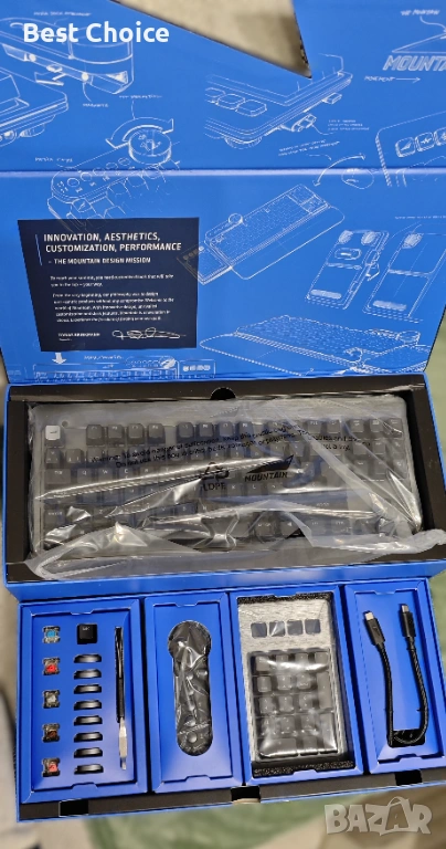 - Горещо сменяеми Cherry MX превключватели: Искате разнообразие? Няма проблем! С Everest Max, Cherry MX превключвателите могат лесно да се сменят с включения инструмент, без запояване. Капачките на клавишите също са лесни за подмяна.