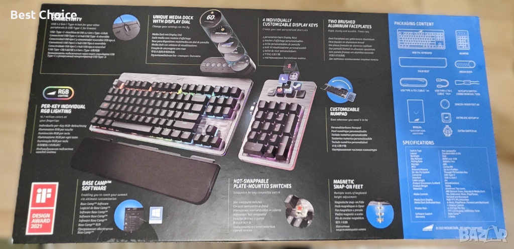 - Свободно регулируемо RGB осветление: настройте RGB осветлението според вашите желания и използвайте множество ефекти благодарение на самостоятелно разработения софтуер Base Camp.