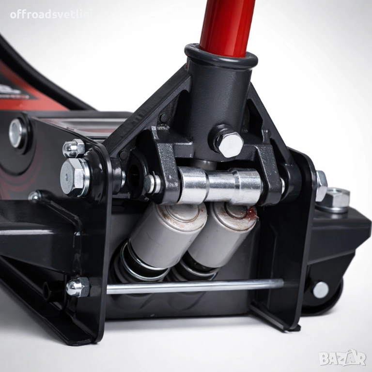 Крикът е оборудван с двойна помпа за бързо повдигане, стабилна стоманена конструкция и колела за лесно маневриране. Отличен избор за професионални сервизи и домашни гаражи.