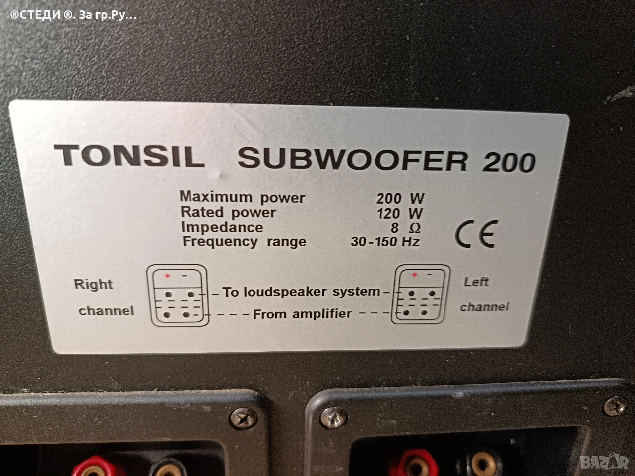 Субуфер Tonsil 200 (30-150 Hz. Размери-62 см x 35 см x 25 см.