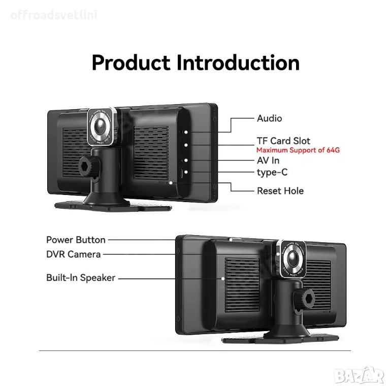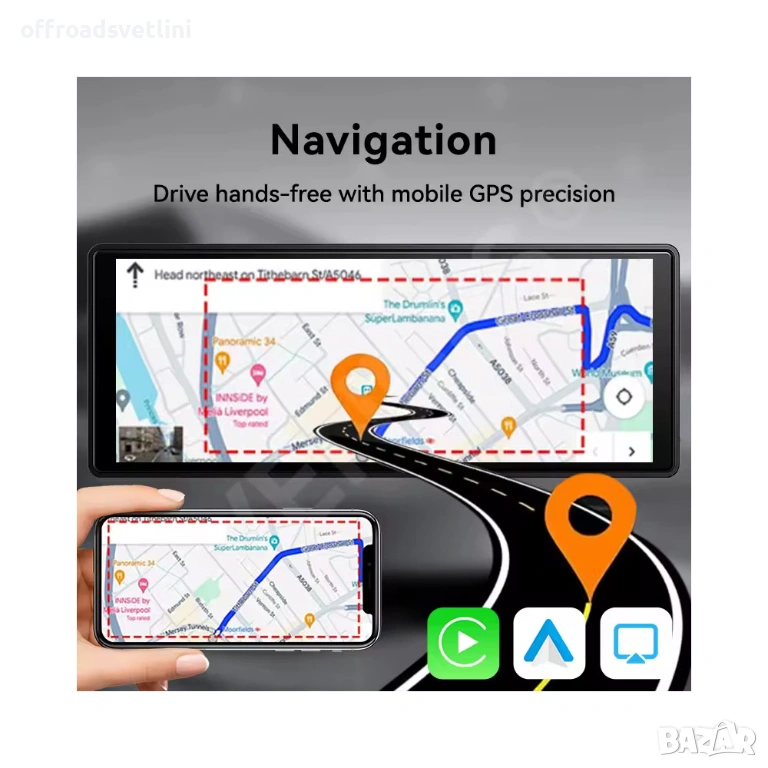 10.26-инчова преносима автомобилна мултимедия е модерно решение без нужда от вграждане. Поддържа безжичен Apple CarPlay и Android Auto, Bluetooth хендсфри, FM трансмитер и разделен екран. Устройството комбинира мултимедия, навигация и DVR функции, като е подходящо за почти всички автомобили.