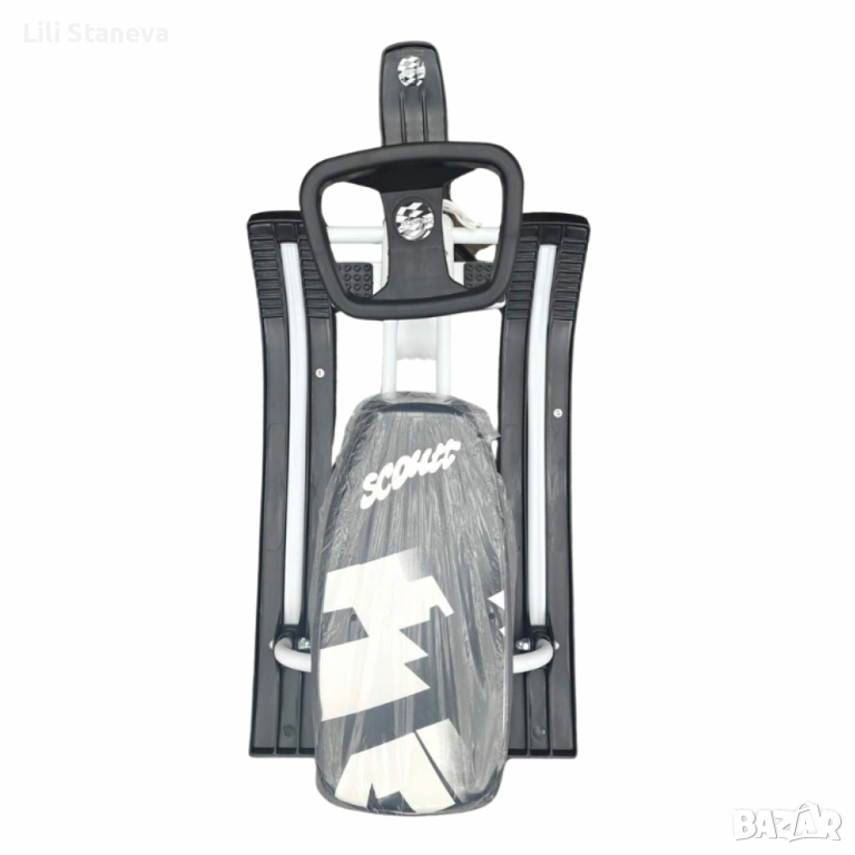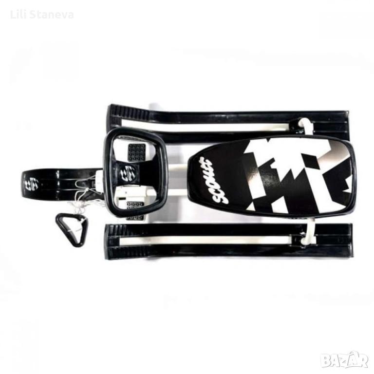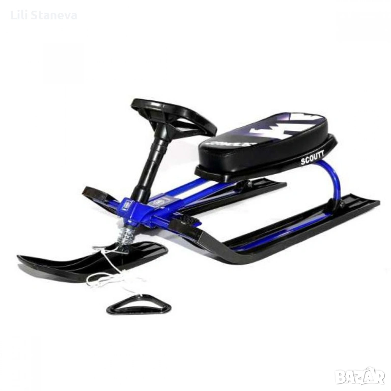 Оребрени ски-позволяват лесно влизане в завоите,което осигурява гладко и безопасно спускане. Изключително здрава,метална спирачка-гарантира безопасност и контрол при спиране.Въже за дърпане-за удобство при преминаване през сняг,или за по-добро управление.Маневрено кормило-осигурява бързи реакции и лесна маневреност на шейната.