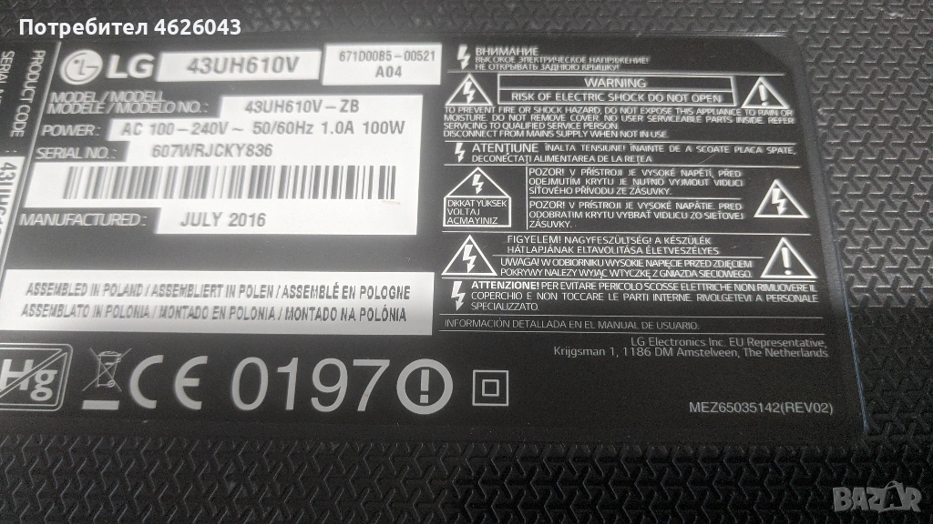 LG43UH610V/EAX66943504/V16_43/49-68870C-0647A Halogen Free → Обява 53058026