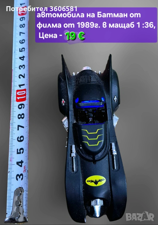 1. Батмобила на батман от филма от 1989г мащаб 1:36 /13,5 д х 5,3 ш х 3 в СМ //дължина, ширина , височина в см/ Цена - 19 €