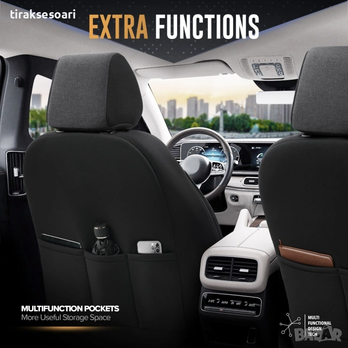 Калъфите следват контурите на оригиналните седалки, предпазват от износване, замърсявания и течности и са подходящи за интензивна ежедневна употреба.