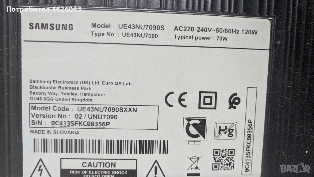 SAMSUNG UE43NU7090S-KANT- SU /NU7090/-43-500V → Обява 53058157