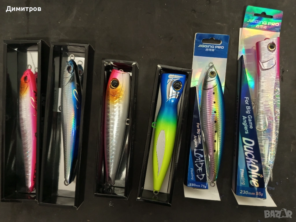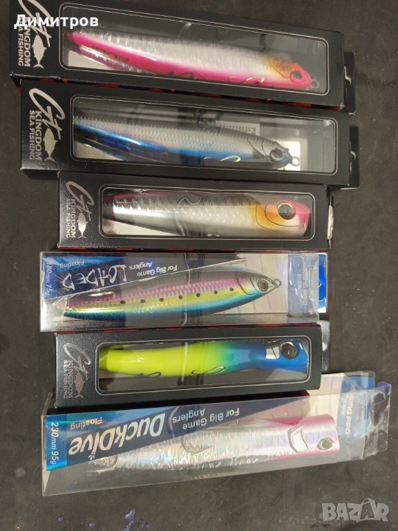 Цената е за комплекта плюс воблерите, мултипликатора е с 500 метра 0.6мм морско влакно 51 кг тест , неизползвани, чисто нови.