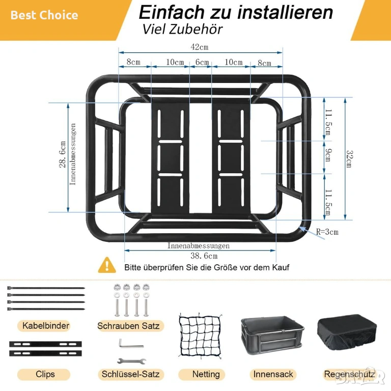 Кошница за велосипед, мотопед, скутери и електрически. + Товарна мрежа, дебела подплата и дъждобран