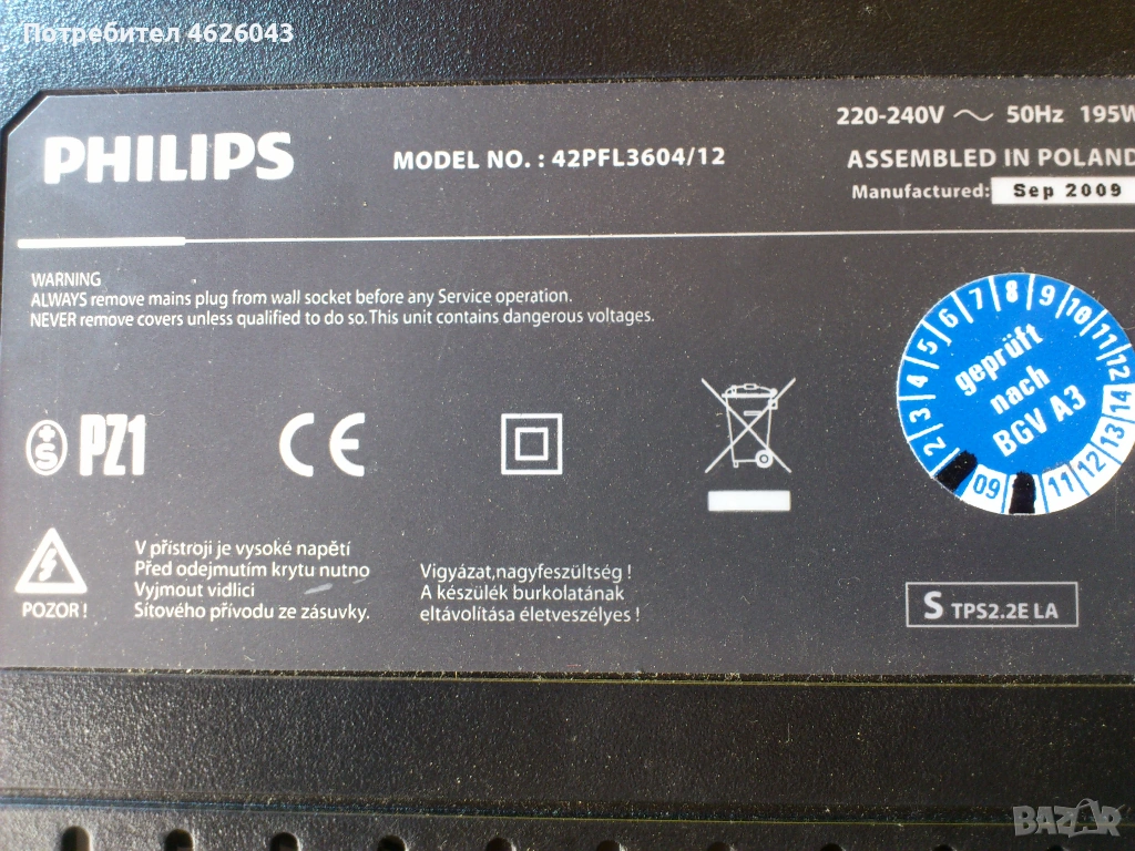 PHILIPS 42PFL3604/12-715G3285-1B-Z-SIDE-715G3437-2-Z-SIDE → Обява 53058501
