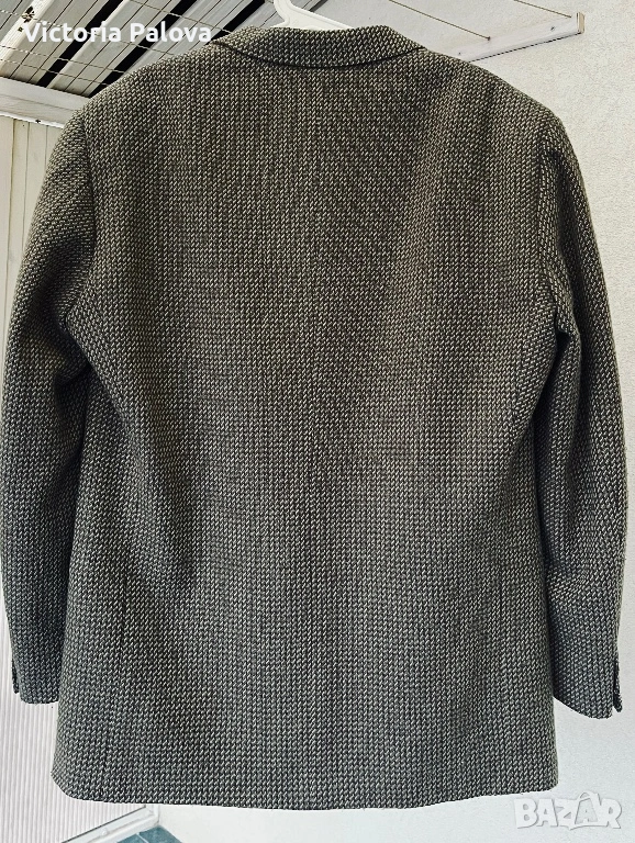 Класическо мъжко сако - вечен дизайн - в елегантен кафяв ( преливащ се в маслинен) цвят с луксозна херингбон шарка в кафяви и кремави тонове - типична за висококачествени италиански тъкани, която придава изтънчен вид, дълбочина и текстура, правейки го истински символ на елегантност и стил. Състав 60% вълна, 25% полиестер и 15% памук, с вискозна подплата за максимален комфорт. Перфектно за бизнес срещи, официални събития или casual стил. Нови сака от Giorgio Armani струват над 1000€. Рамо - 52см ( подсилено), ГО - 62см, дължина - 81см, ръкав - 64см.