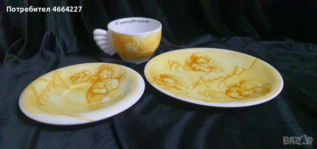 Красив италиански комплект за кафе от THUN,част от популярната колекция " Caffè al Volo" Висококачествен порцелан