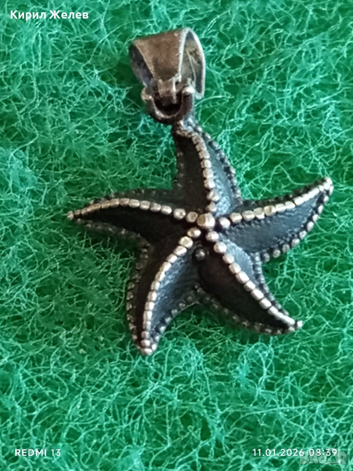 Сребърен медальон във формата на МОРСКА ЗВЕЗДА символика чувственост, дълголетие и мъдрост 43317