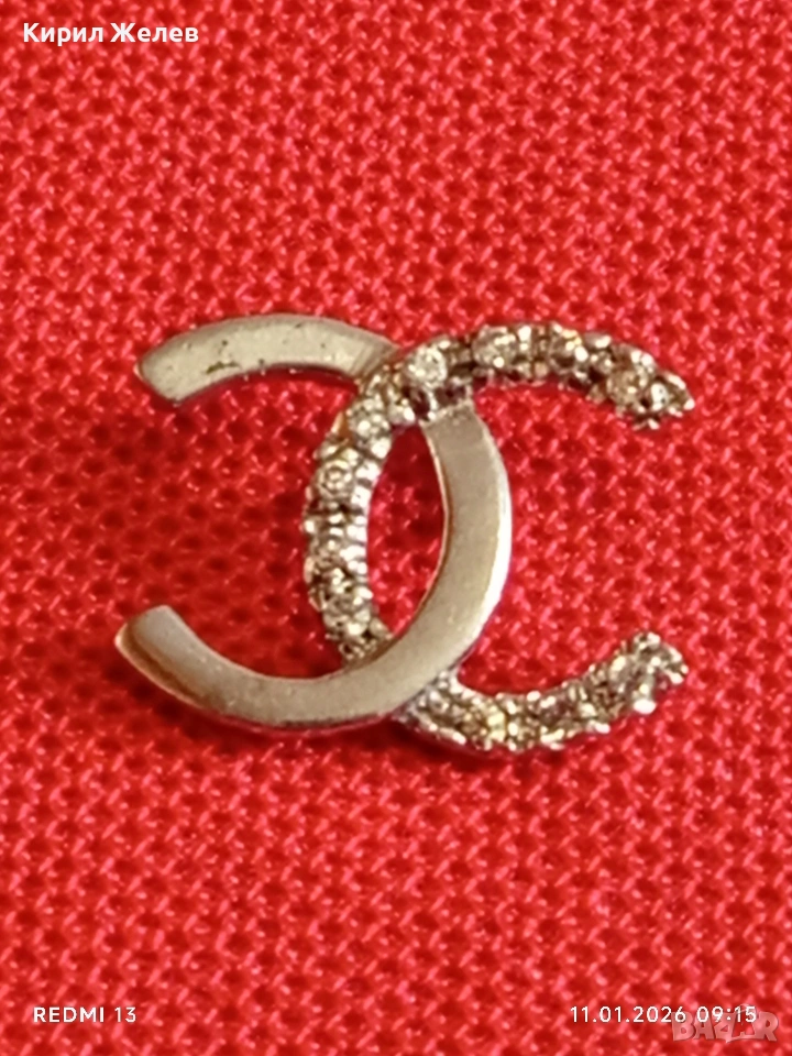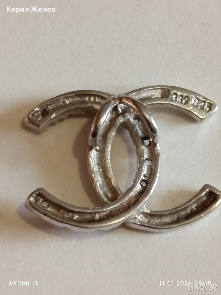 Красива сребърна висулка с логото на Chanel инкрустирани кристали стил и елегантност 27712