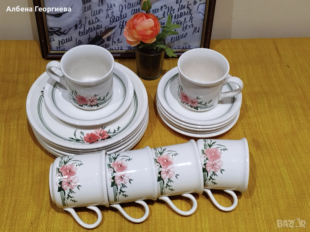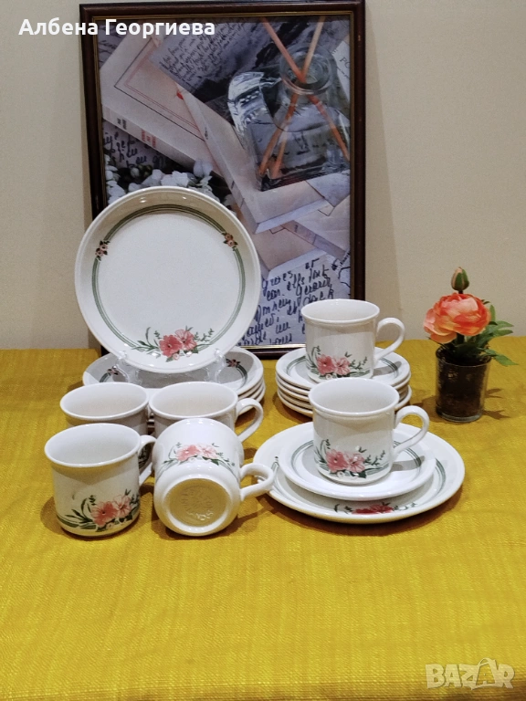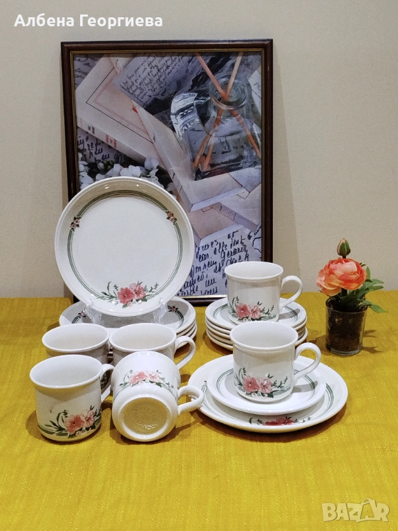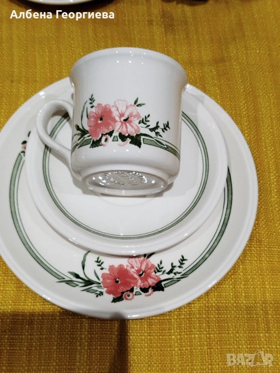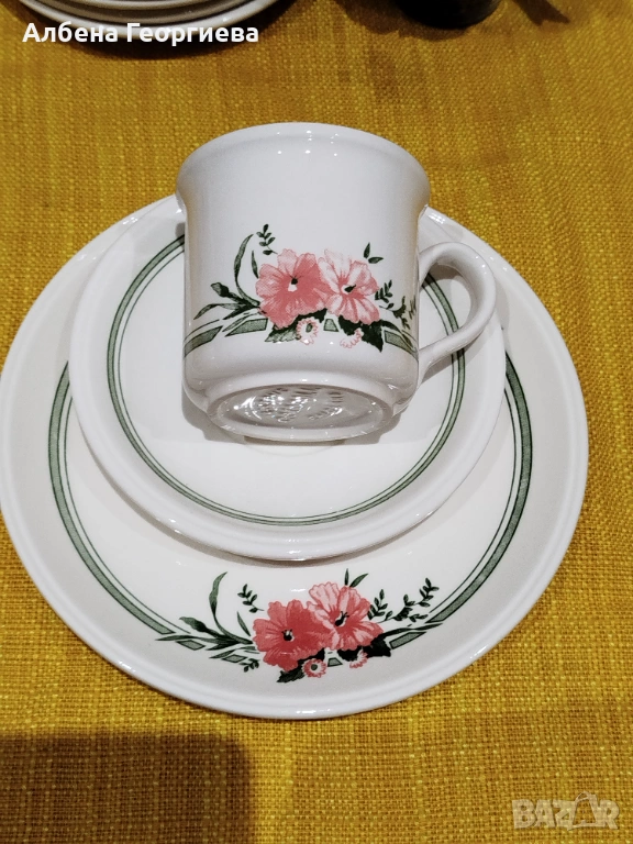 Много красив комплект чаши и чинийки Biltons Coloroll с мотив🍵🌹 в отлично състояние .Налични 6 броя тройни сета с обща