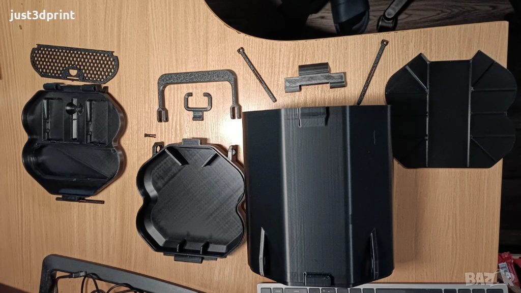 1. Събира дрона с батерия, 2х батерии, отверка и отделение за допълнителни перки/кабели.