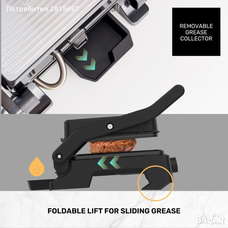 Контактен грил Taurus Grill and Co, 1500W с плаващ капак и регулируем термостат