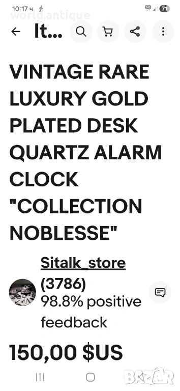 Прекрасен настолен позлатен будилник Collection Noblesse, снимка 1 - Антикварни и старинни предмети - 53060516 Прекрасен настолен позлатен будилник Collection Noblesse, снимка 2 - Антикварни и старинни предмети - 53060516 Прекрасен настолен позлатен будилник Collection Noblesse, снимка 3 - Антикварни и старинни предмети - 53060516 Прекрасен настолен позлатен будилник Collection Noblesse, снимка 4 - Антикварни и старинни предмети - 53060516 Прекрасен настолен позлатен будилник Collection Noblesse, снимка 5 - Антикварни и старинни предмети - 53060516 Прекрасен настолен позлатен будилник Collection Noblesse, снимка 6 - Антикварни и старинни предмети - 53060516 Прекрасен настолен позлатен будилник Collection Noblesse, снимка 7 - Антикварни и старинни предмети - 53060516 1/7
