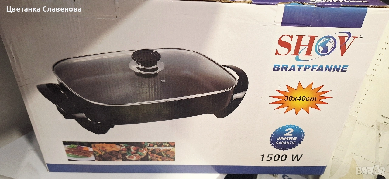 Електрически тиган/ скара Shov 30x40см–незалепващо покритие със стъклен капак 1500W