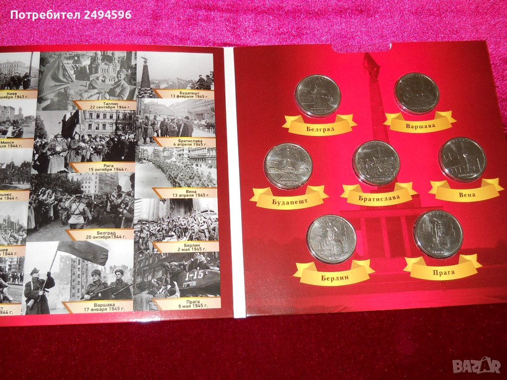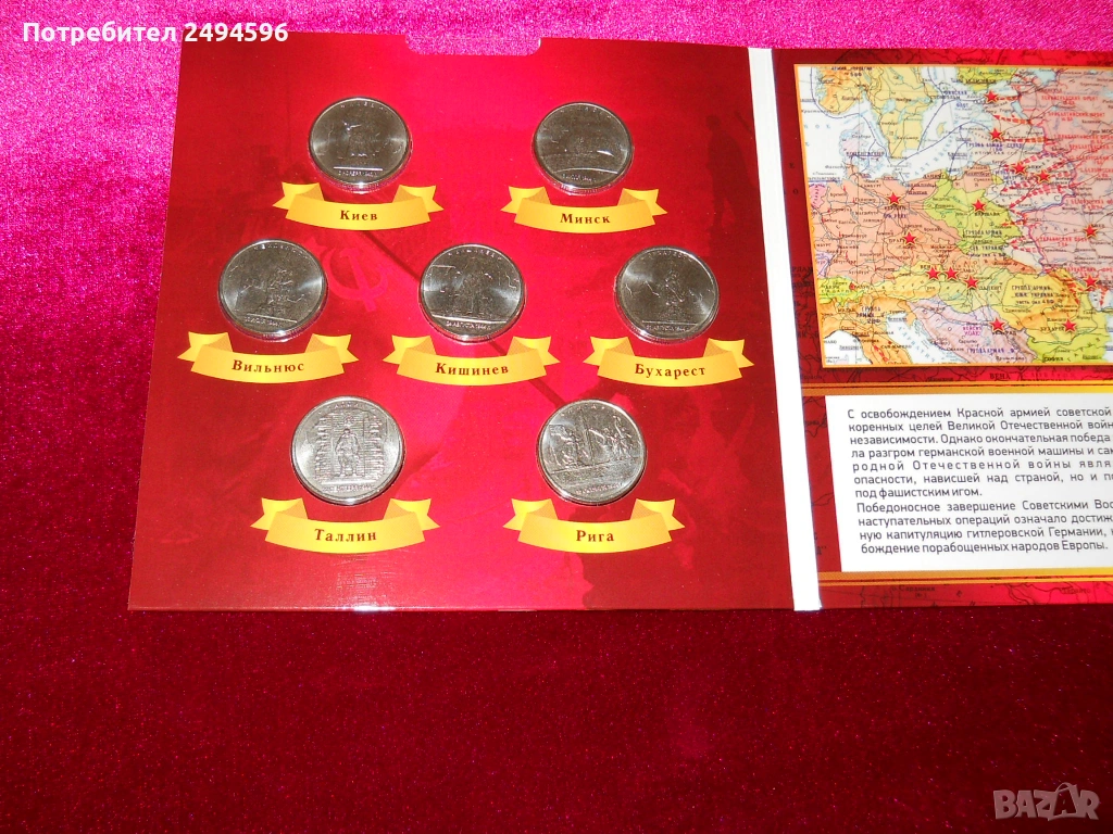 Продавам нова уникална колекция от руски монети посветена на освождаването на столиците на държавите от Фашизма 1941-1945 г от Руската армия.Тиража е 2000 бр издаден само в Русия !Много рядка и ценна колекция !! При интерес пишете или оставете телефон и ще ви се обадя ! Предпочитам лично предаване !
