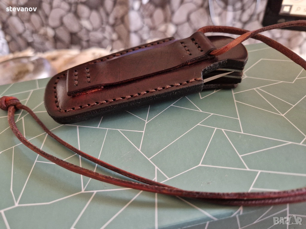 Сгъваем нож ножка със калъв от естестведна кожа