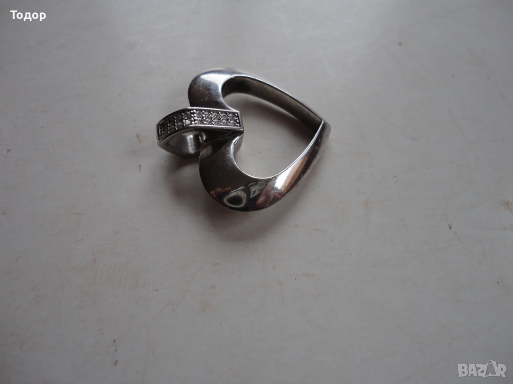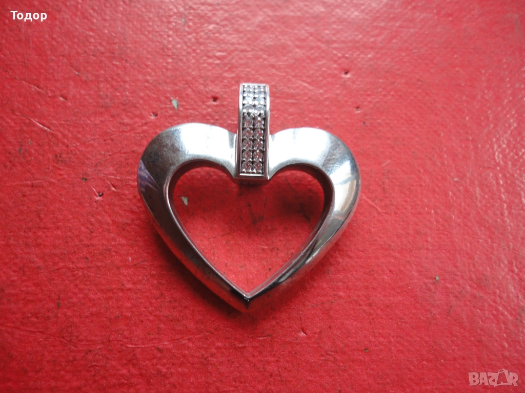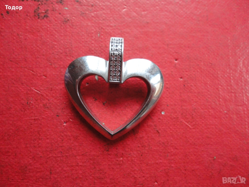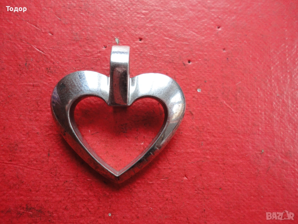 Страхотна дизайнерска изработка Във формата на сърце е и ухото за закачане Височина 33 мм Ширина 32 мм Тегло 11,8 гр Многобройни маркировки Отлично състояние