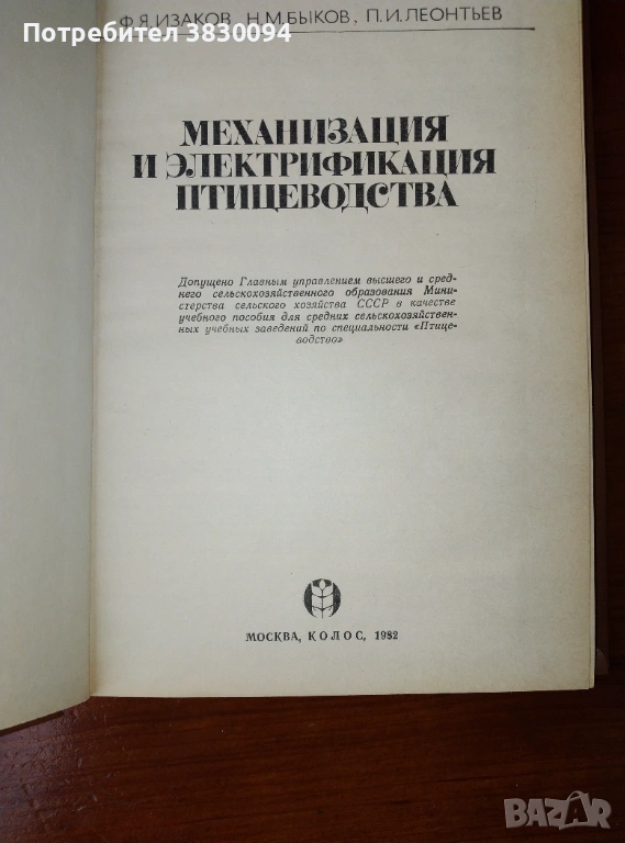НА РУСКИ - Учебник за Селскостопански Техникуми,Москва 1982г ,Отлично запазена Тираж -15000