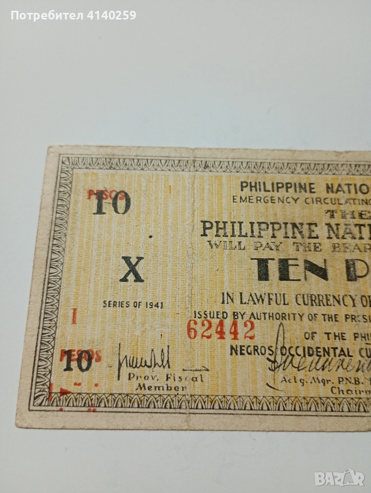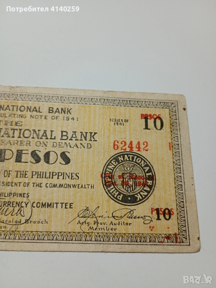 ФИЛИПИНИТЕ БАНКНОТА 10 ПЕСОС 1941 Г → Обява 53061231