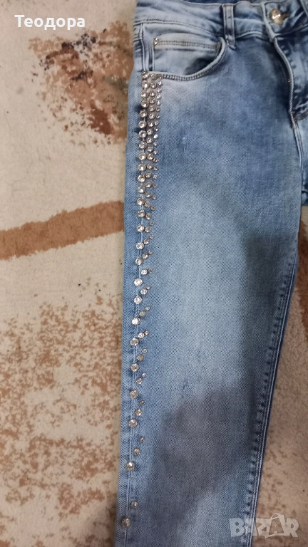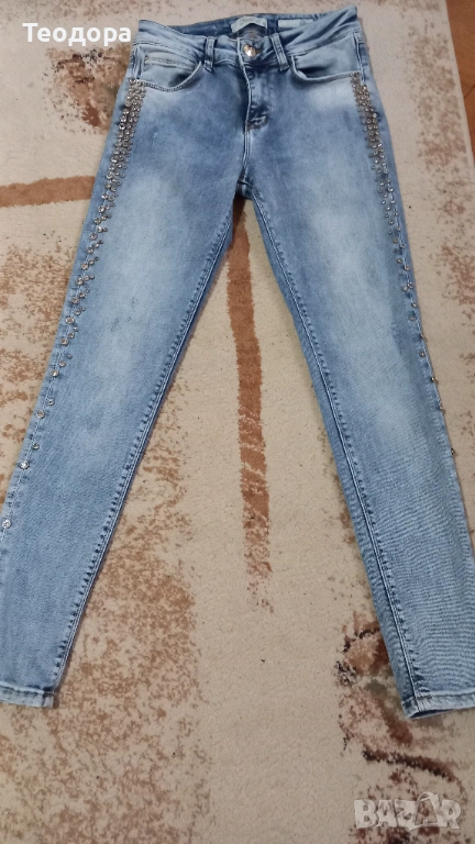 Много ефектни дънки с кант от множество изкрящи камъчета.Дънките от мек и еластичен деним,в перфектно състоятие