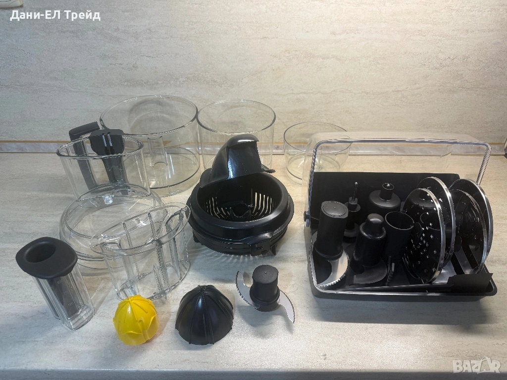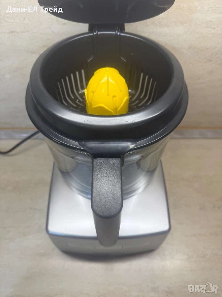 Комплекта включва уред,купи,органайзер за приставките и оригинална книга с рецепти.