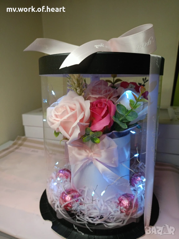 Светеща кутия с букет и бонбони → Обява 53061582