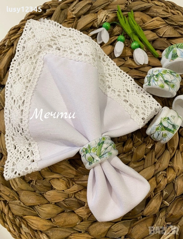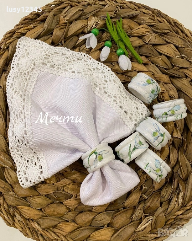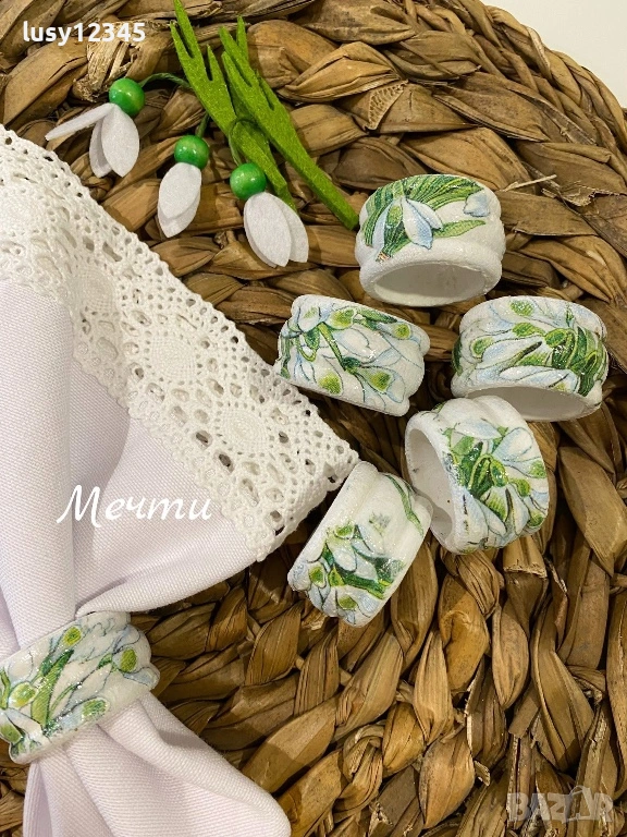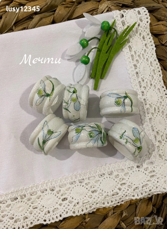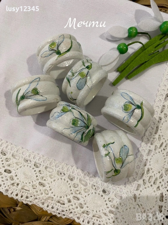 Комплект шест пръстени за салфетки с кокичета! → Обява 53061687