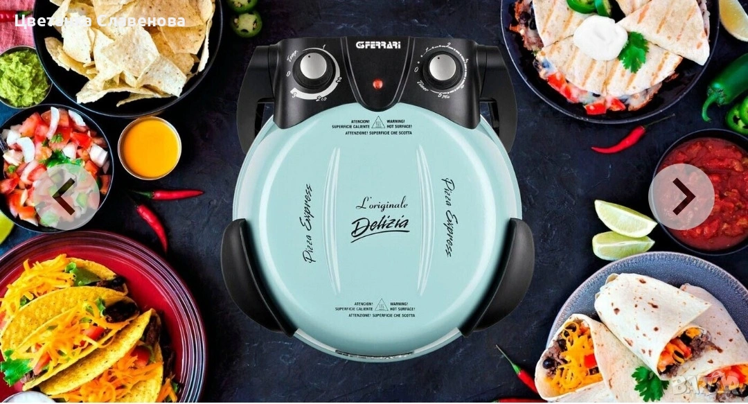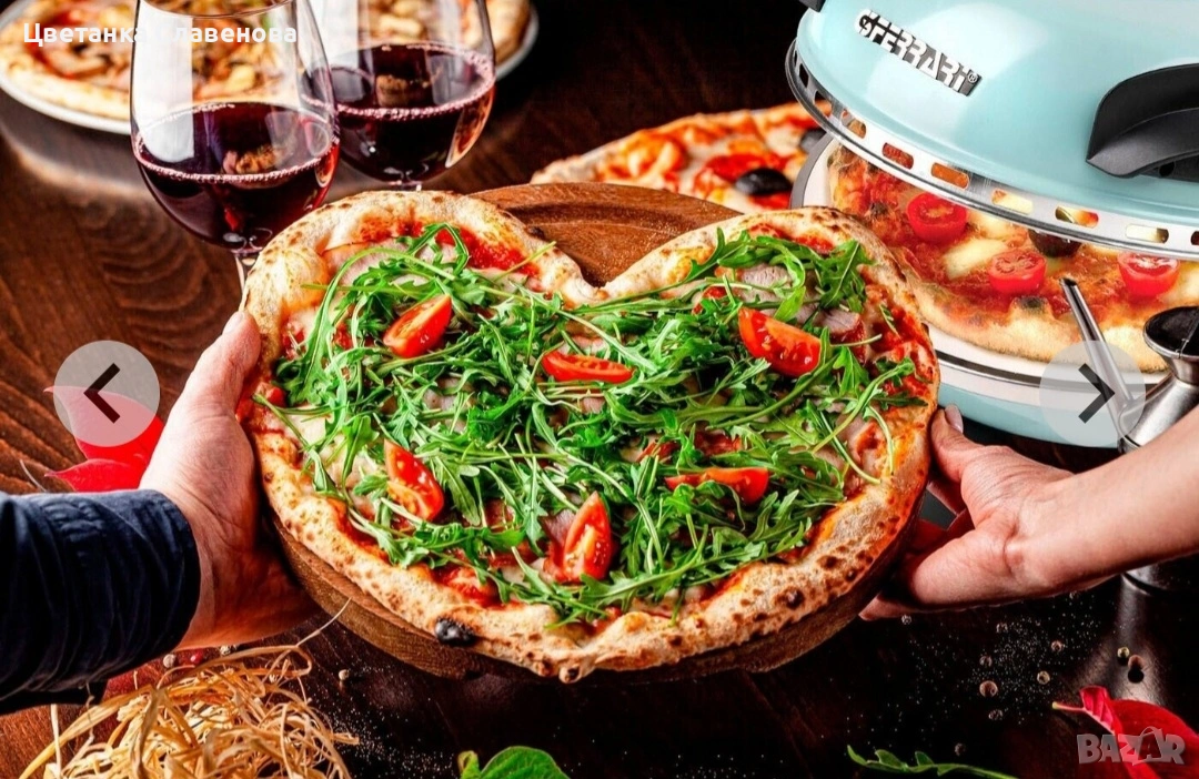 С електрическата фурна за пица G3 Ferrari Delizia можете да приготвяте пици у дома, толкова уникални и хрупкави, колкото тези от каменните фурни на най-добрите пицарии в Неапол. G3 Ferrari Delizia достига температури до 400°C за перфектни резултати при печене. Вашата домашна пица е готова за сервиране само за около 5 минути. Топлината се съхранява в камъка и се разпределя равномерно върху тестото, което води до особено равномерно хрупкава основа – вкусна и хрупкава, без пълнежът да изсъхва. Двата нагревателни елемента с регулируеми термостати достигат температури до 400°C, точно както в традиционните италиански пицарии. Идеална е и за бързо затопляне и печене на прясно изпечен хляб, кроасани и багети. Фурната за пица е практична, лесна за употреба и компактна, което я прави лесна за носене – независимо дали за рожден ден, филмова вечер, футболен мач, момичешка вечер, къмпинг, събиране или като уникален подарък. Благодарение на атрактивния си дизайн, фурната за пица е истинска атракция във всяка кухня. Инструкциите за употреба включват множество вкусни, автентични италиански рецепти.