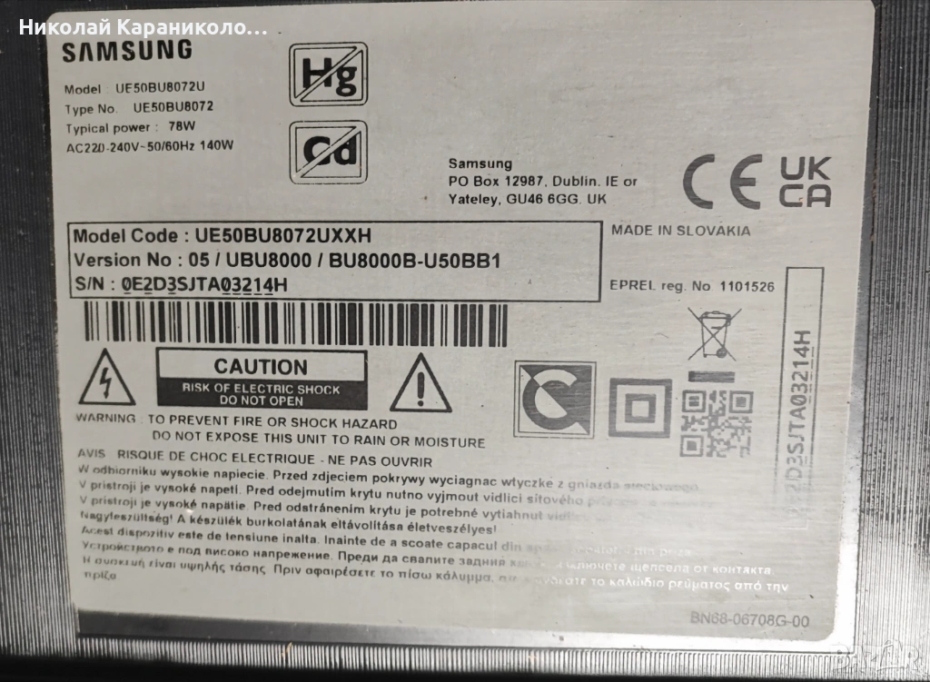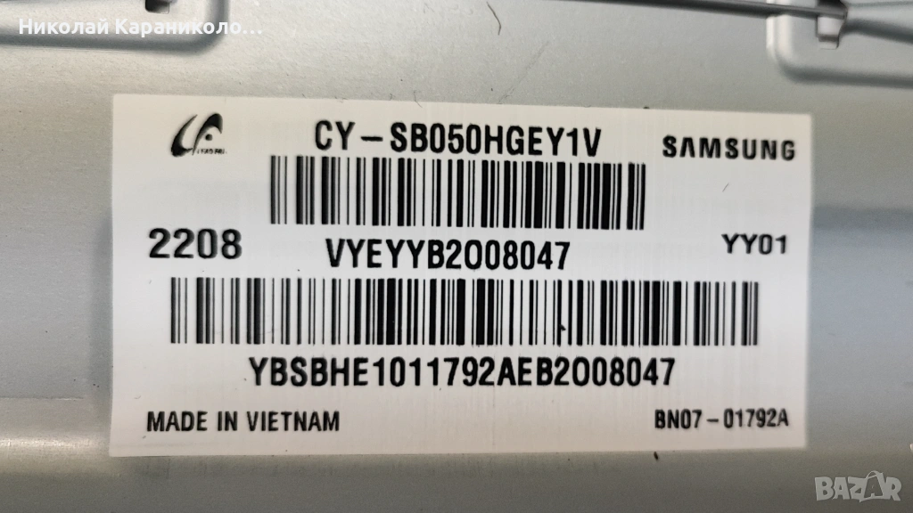 Продавам тв SAMSUNG UE50BU8072U за части по причина-дефектирала матрица/CY-SB050HGEY1V/.Редовни съответно: