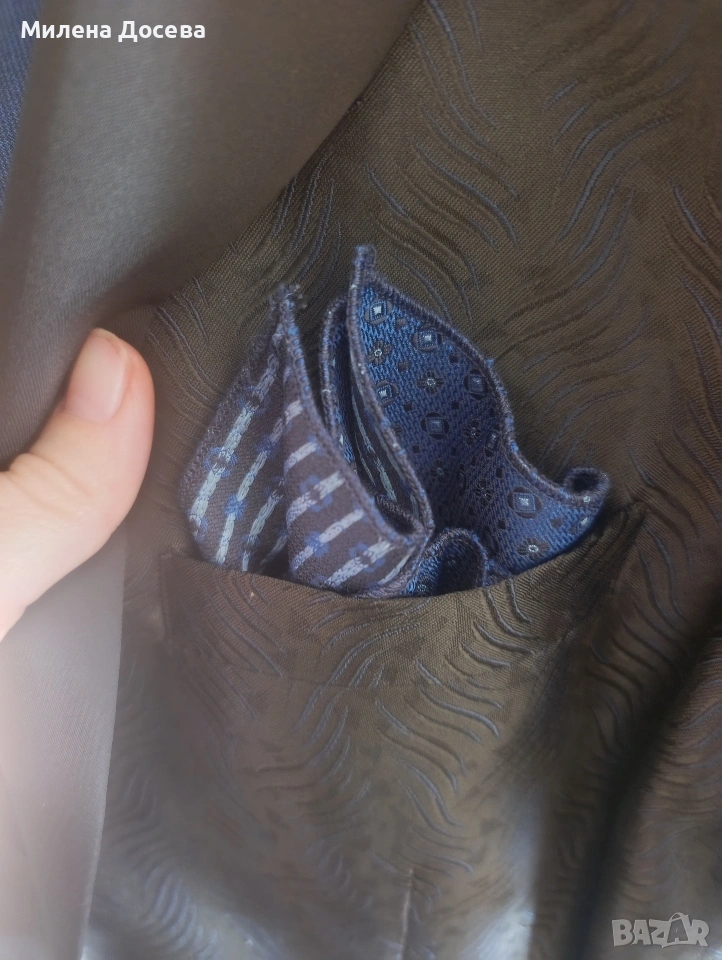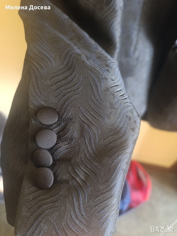 Костюмът е обличан веднъж :) Само сакото беше над 400 лв, така че цената не подлежи на коментар