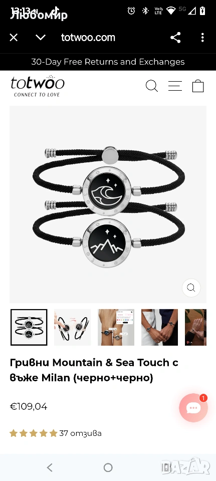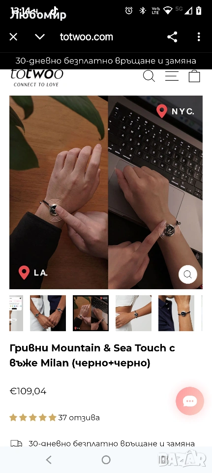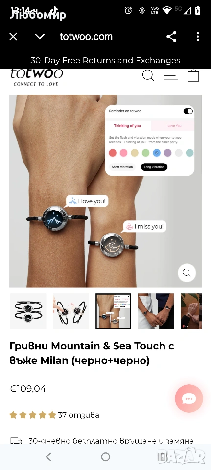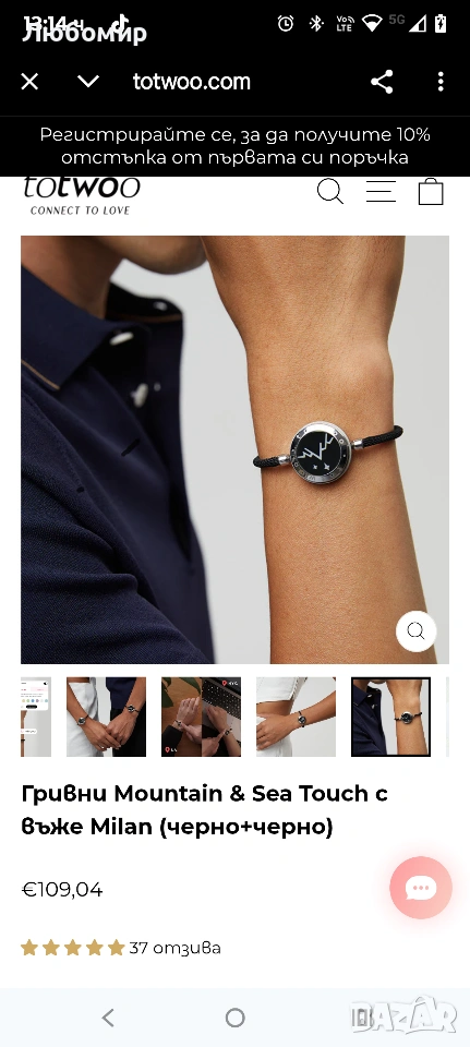 Всяка ваша вибрация и светване възпроизвежда докосването на партньора ви и държи любовта близо до вас. Ще знаете, че той мисли за вас с всяка вибрация и светване на вашите гривни Mountain & Sea touch.