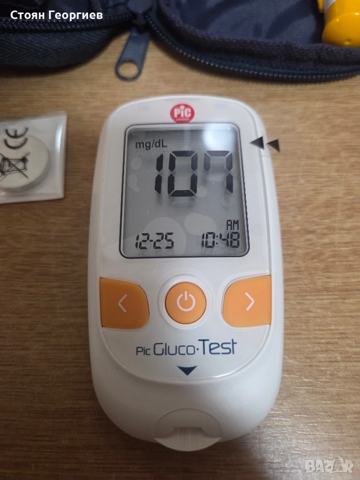 Комплект за измерване на кръвна захар Pic Solution GlucoTest Марка Решение на Pic Име на модела Pic Solution Glucotest монитор за кръвна захар Тегло на артикула 0,24 килограма Състав на батерийните клетки Алкална Относно този артикул Добро качество Издръжливост Описание на продукта Комплектът Pic Solution Pic GlucoTest е пълен и практичен, включен в малка чантичка за бързо и лесно измерване на кръвната захар; само за 5 секунди резултатът е точен и прецизен; и пълният комплект за измерване на кръвната захар с глюкомер, ланцетно устройство и ленти за събиране на проби от кръвна захар; роден от Indolor Expert.ienceTM и вдъхновен от новата философия на DLS Design Language Solution; комплектът съдържа глюкомер, 10 ленти, 1 ланцетно устройство, 5 ланцета 30 g и 5 ланцета 32 g (по-тънки). Мониторът за кръвна захар Pic Прави контрола на кръвната захар практичен, бърз и точен, тъй като резултатът се получава само за 5 секунди. Измерванията могат да се правят преди или след хранене. Почти безболезнено измерване Благодарение на технологията Rapid Draw, ексклузивната технология за бързо абсорбиране на марката Pic, болката е сведена до минимум, а количеството кръв, необходимо за измерване, е само 0,3 микролитра.