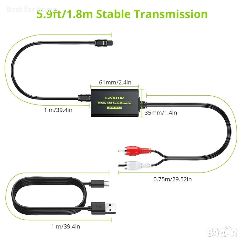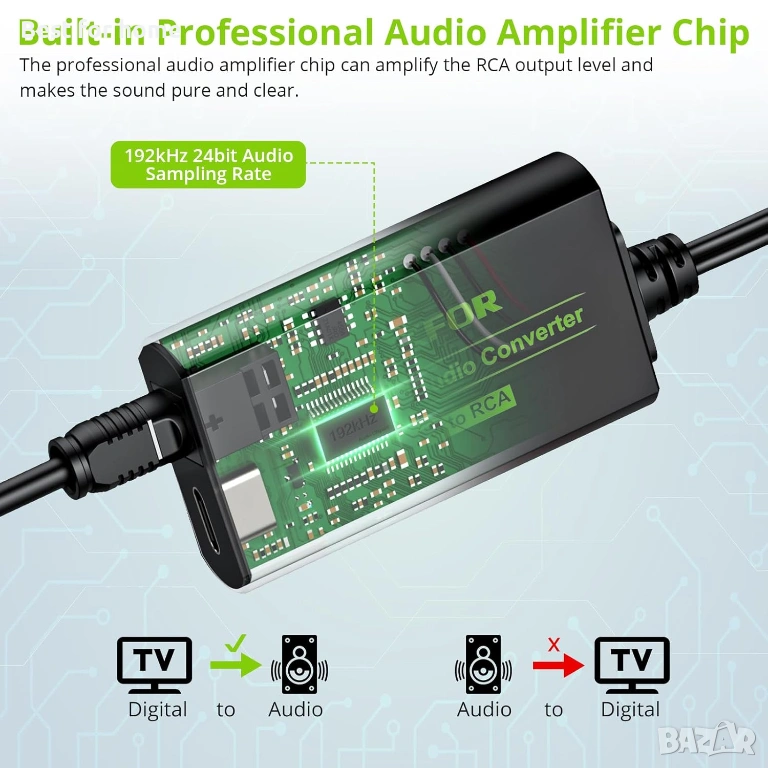 Високо качество на звука: Поддържа честота на дискретизация до 192kHz/24-bit, което гарантира Hi-Fi звучене без загуби и смущения.